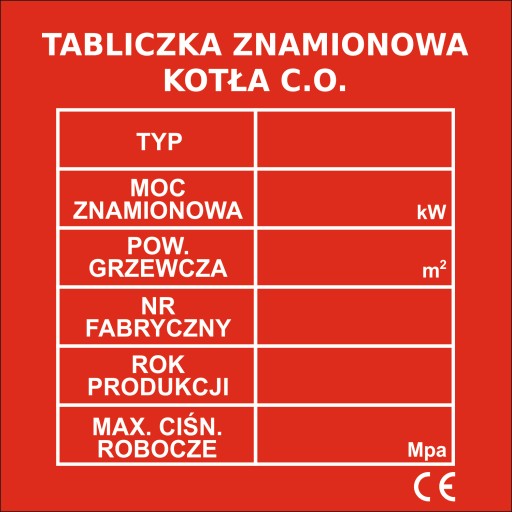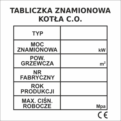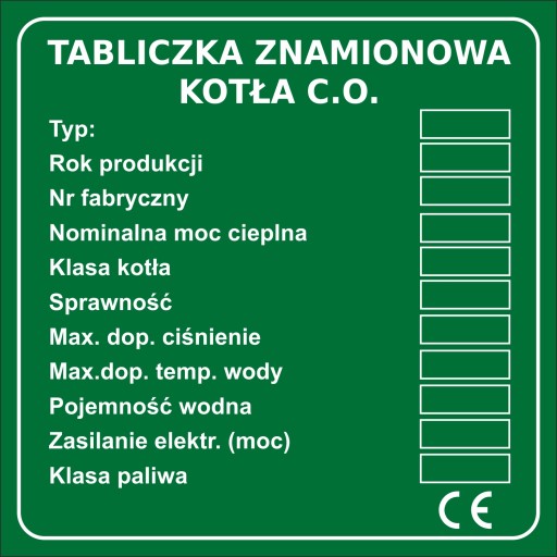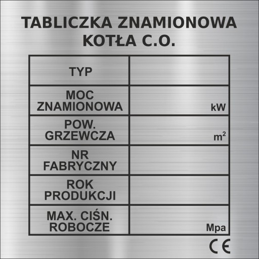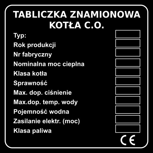 TABLICZKA ZNAMIONOWA KOTŁA CO w rozmiarze 10x10 cm z dowolnym grawerem!