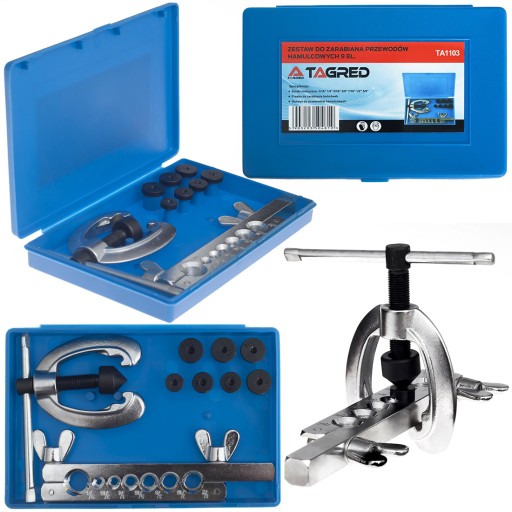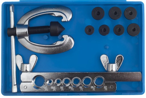 Niezbędny w każdym warsztacie - zestaw do zarabiania aluminiowych i miedzianych przewodów hamulcowych oraz do wykonywania stożkowych kołnierzy połączeniowych.