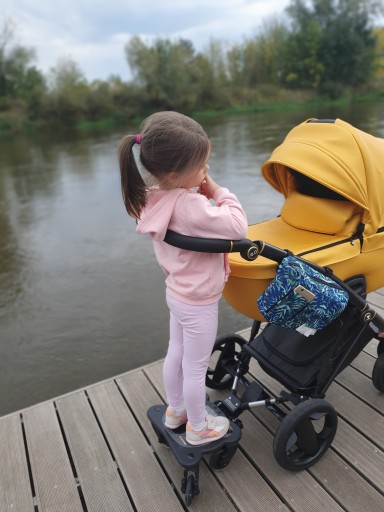 - Duża powierzchnia antypoślizgowa platformy redukuje ryzyko poślizgnięcia się dziecka na platformie oraz odblaskowe elementy dla dodatkowego bezpieczeństwa dziecka