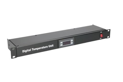 Termostat steruje pracę paneli wentylacyjnych wewnątrz szafy rack. Dzięki niemu zachowane są odpowiednie warunki pracy zamontowanych urządzeń. Termostat zapewnia oszczędność energii.