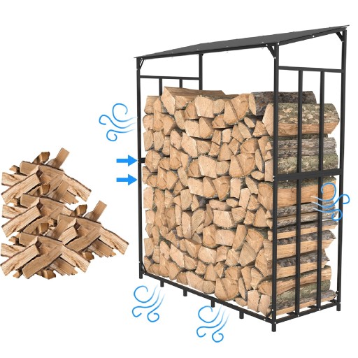 Stojak do przechowywania utrzymuje drewno opałowe, sezonowane lub niesezonowane, z dala od podłoża i umożliwia cyrkulację powietrza pod dnem.Pomaga prawidłowo ułożyć kłody drewna opałowego i ułożone w stos drewno opałowe stopniowo wysycha, zapewniając łatwy dostęp podczas spalania