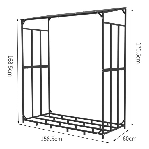 Ten stojak ma wymiary 156,5x60x176,5 cm. Wystarczająco duży, aby ułożyć dużą ilość drewna opałowego do 1,32 metra sześciennego i maksymalnej wagi 660 funtów. Zapewni to wystarczającą ilość drewna opałowego do wykorzystania podczas Święta Bożego Narodzenia lub zimowe dni