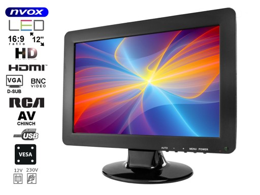 Monitor samochodowy LED 12" cali z wejściem VGA USB HDMI