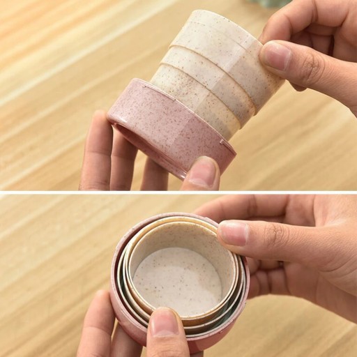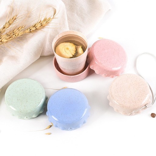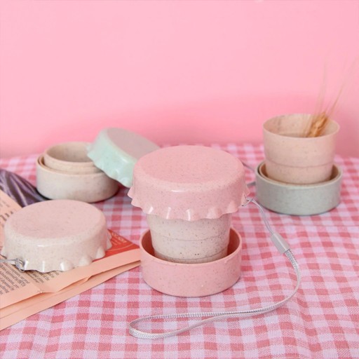 Składany kubek ze słomy pszennej z pokrywką, wygodny do przenoszenia.