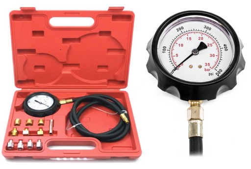 Zestaw umożliwia dokonywanie pomiaru oleju w silnikachsamochodów osobowych i ciężarowych, oraz automatycznychskrzyniach biegów. Pasuje do większości marek samochodów.Umożliwia wczesne odkrycie usterki pompy oleju lub zanieczyszczonych kanałków oleju.