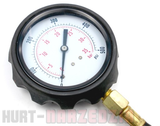 Zakres pomiarowy: 0-500 PSI/0-35 bar.