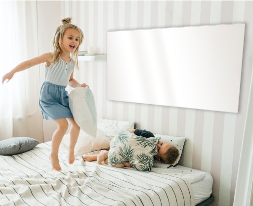 Tylko 16 mm grubości - panel został wykończony stylową, aluminiową ramką w kolorze białym. Mocowania ścienne odsuwają panel na 27 mm od ściany w celu zachowania bezpiecznej cyrkulacji powietrza. Tradycyjne grzejniki konwekcyjne zabierają minimum 100-120 mm przestrzeni.