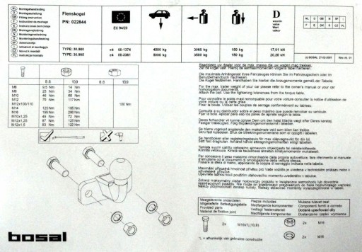 Maksymalny nacisk na kulę: [kg] 150 kg