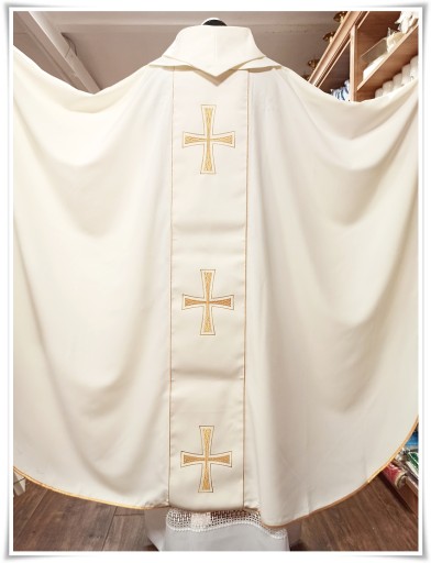 - biel (kremowe i ecru) – są przywdziewane przez kapłana na msze okresu wielkanocnego i Narodzenia Pańskiego, we wszystkie święta Jezusa Chrystusa – z wyjątkiem tych dotyczących Jego męki – oraz w dni świętych, którzy nie byli męczennikami. Białe są także ornaty Maryjne;