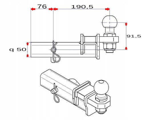 Podwyższany adapter składa się z dwóch elementów: korpusu oraz kuli, które można łatwo zamontować i zdemontować. Pozwala to na bardzo szybkie podłączenie haka do auta lub jego demontażu, gdy tylko pojawi się taka potrzeba.