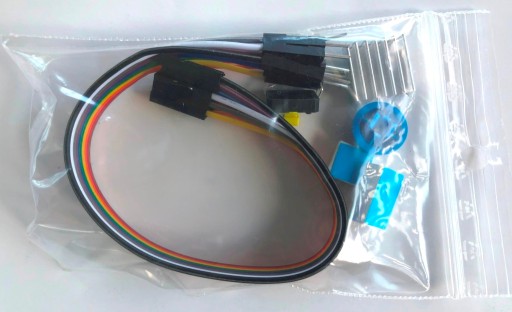 - komplet elementów elektronicznych (rezystory, diody, moduł buzzera, czujnik temperatury, przycisk).