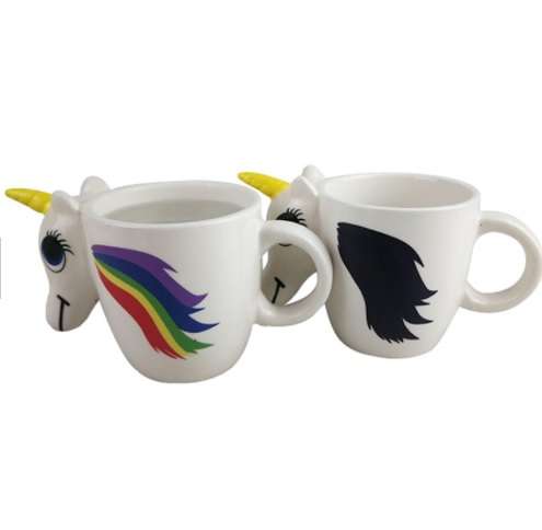 Piękny kolorowy kubek z motywem jednorożca. Po napełnieniu go gorącym napojem grzywa jednorożca staje się kolorowa i wyrazista. Mogą go używać nie tylko dzieci. Picie z tego kubka wprawi Cię w bajkowy nastój