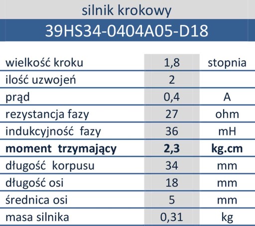 - wielkość kroku 1,8 stopnia kątowego; 200/obrót