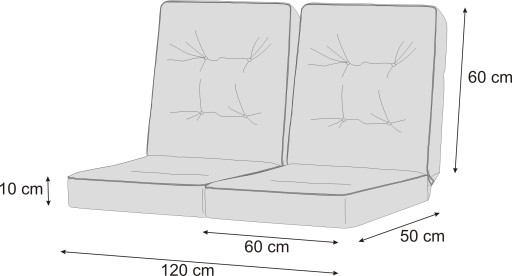 Zestaw dwóch poduszek Venus pasuje idealnie do ławek lub huśtawek o szerokości 120 cm. Zestaw trzech do ławek lub huśtawek o szerokości 180 cm.