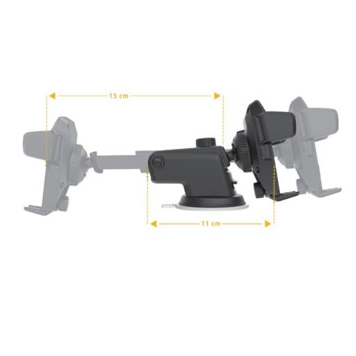 W uchwycie wykorzystano nową, dwuetapową dźwignię, która sprawia, że można zamocować uchwyt w dowolnym miejscu na szybie, a dzięki mocnej żelowej przyssawce również na większości deskach rozdzielczych.