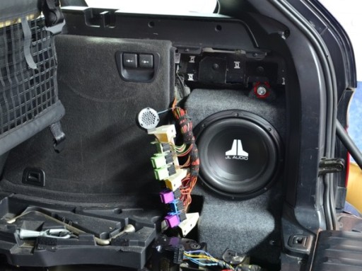 1. Do zamontowania subwoofera wymaganie jest przeniesienie wiązek, modułów i niektórych elementów tak, aby subwoofer się zmieścił. Oczywiście jest to wykonalne, wszystkie moduły i wiązki mają zapas przewodów do przesunięcia.
