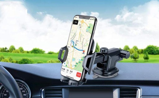Uchwyt montowany na silnej przyssawce to uchwyt samochodowy o dużych możliwościach regulacji.