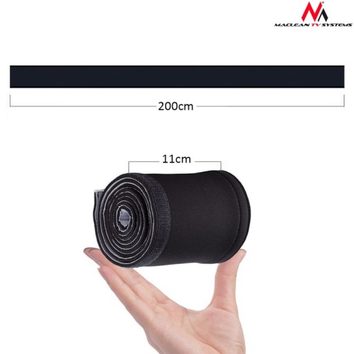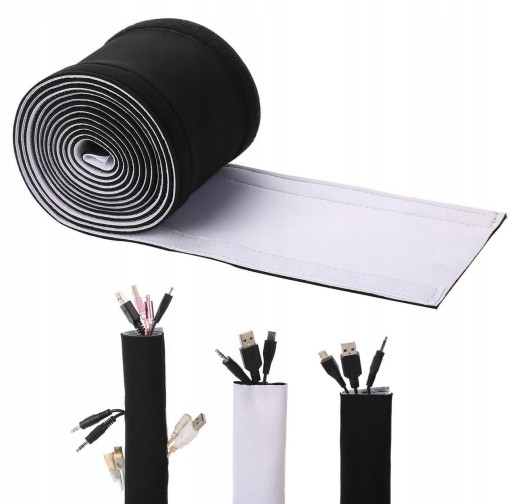 Neoprenowa maskownica kabli o długości 2 metrów, przeznaczona do organizowania i ochrony kabli przy sprzęcie komputerowym, hi-fi, gospodarstwa domowego i biurowym, w domu, sklepie, biurze, warsztacie, fabryce – wszędzie tam, gdzie znajdują się urządzenia zasilane prądem.