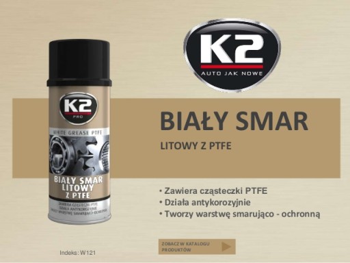 Biały smar litowy z PTFE w sprayu K2 White Grease 400 ml