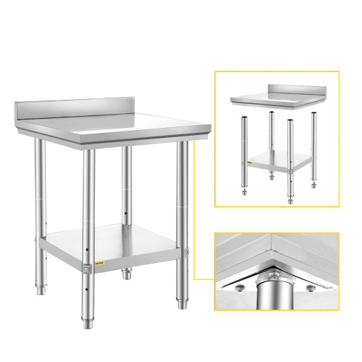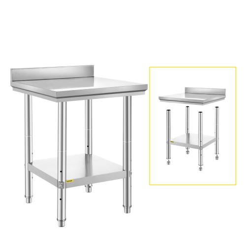 Topowy stół roboczy do zastosowań komercyjnych. Wykonany z wytrzymałej niemagnetycznej stali nierdzewnej, odpornej na korozję i zużycie, nie odkształci się łatwo bez kłopotów, bałaganu i zanieczyszczeń. Możesz łatwo zmienić wysokość obracając nóżki, idealne do kuchni, restauracji, szkoły i każdego innego zastosowania domowego lub komercyjnego.