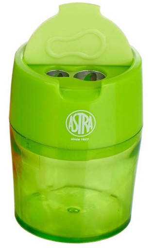 Temperówka Astra posiada dwa otwory różnej wielkości oraz pojemny zbiorniczek.