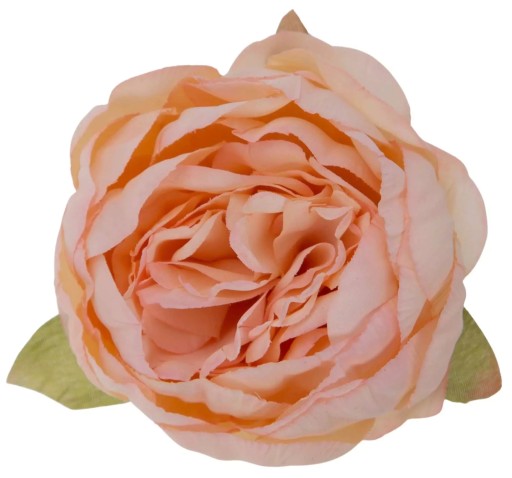 Oferta przedstawia dużą główkę peoni wyrobowej. Produkt został wykonany z wysokiej jakości materiału. Główka peoni jest w kolorze brzoskwiniowym. Na odwrocie znajdują się zielone listki o nierównym kształcie i rozmiarze. Dodatkowo peonia posiada miejsce na drut wyrobowy lub łodygę. Kwiat idealny do dekoracji, lub kompozycji florystycznych. Na innej naszej aukcji duży wybór łodyg i liści.