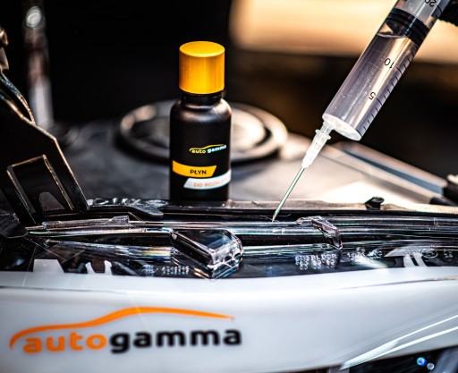 Płyn do rozklejania reflektorów i strzykawka umożliwia rozklejenie lamp sklejonych na twardym kleju. Specjalny skład płynu powoduję zmiękczenie kleju.