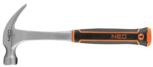 ✅ Młotek stolarski NEO (nr ref. 25-103) o masie 450 g przeznaczony głównie do precyzyjnego wbijania gwoździ. Jest wykonany z pojedynczego elementu stalowego, a obuch został utwardzony indukcyjnie i oszlifowany laserowo.