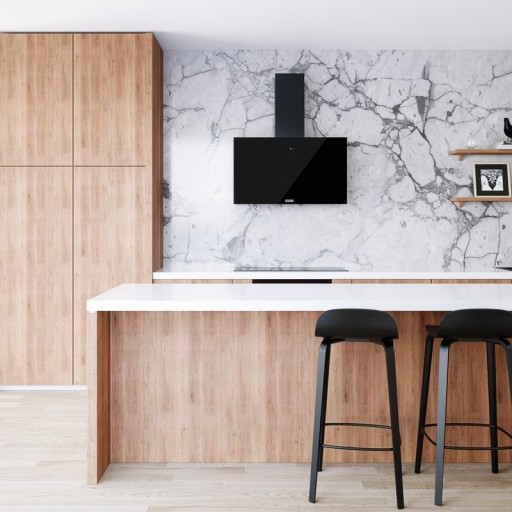 Charakterystyczna, płaska powierzchnia oraz głębokość modelu Lonis sprawiają, że okap kuchenny idealnie licuje się na równi ze standardowymi szafkami kuchennymi o głębokości 30 cm.