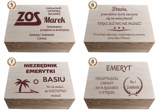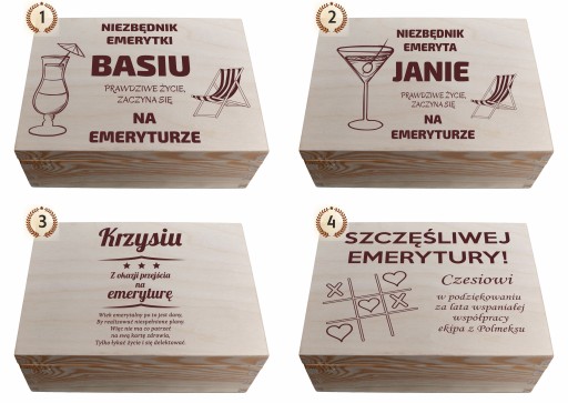 Pudełko jest idealnym podarunkiem i pamiątką z okazji przejścia na emeryturę.