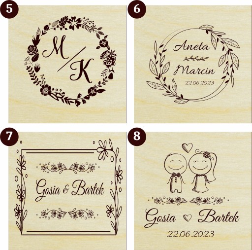 NADRUK na eleganckim papierze, w środku imiona młodych - data ślubu, Twoje życzenia oraz podpis.
