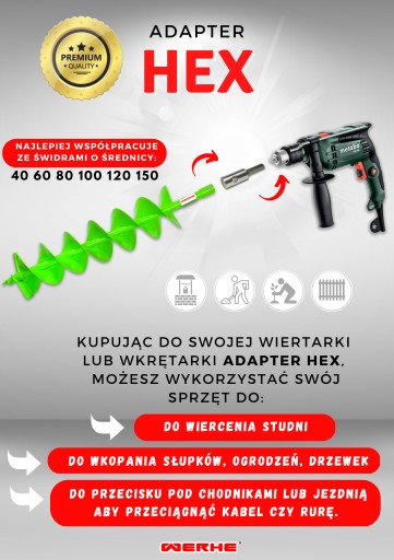 Kupując do swojej wiertarki lub wkrętarki wiertło do gleby i adapter hex, możesz wykorzystać swój sprzęt do wiercenia studni. Do wkopania słupków, ogrodzeń, drzewek. Możesz również wykorzystać ją do przecisku pod chodnikami lub jezdnią aby przeciągnąć kabel czy rurę.