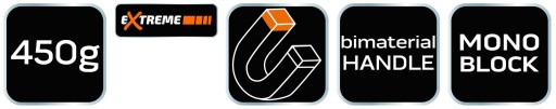 Młotek stolarski 450 g, monolityczna konstrukcja + rękawice robocze z magnesem i rzepem,