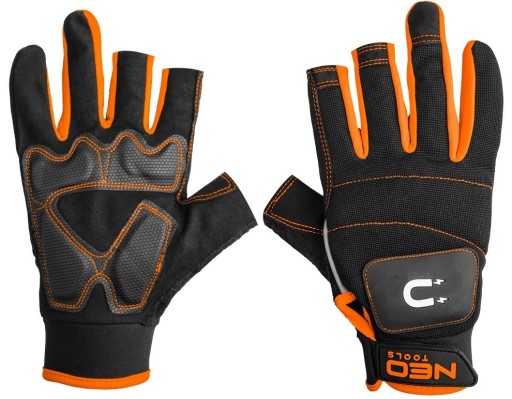 Rękawice robocze z magnesem i rzepem, bez trzech palców, rozmiar 10", odporność na ścieranie 2, odporność na przecięcie ostrym narzędziem 1, odporność na rozdzieranie 2, odporność na przekłucie 2, CE.