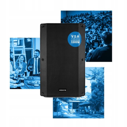 Vonyx VSA15 to aktywna kolumna w obudowie z tworzywa ABS. Wyposażona jest we wbudowany wzmacniacz z wejściami liniowymi, mikrofonowymi i gitarowymi, dzięki czemu można ją używać wszechstronnie. Wyjście liniowe umożliwia łatwe przesyłanie sygnału do drugiej kolumny. Dzięki temu VSA15 może być używana do małych zastosowań, takich jak imprezy w domu, przemówienia lub demonstracje, ale z wieloma kolumnami, większe wydarzenie może być również wyposażone w muzykę, śpiew lub przemówienie za pomocą VSA15.