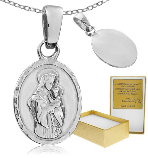 DELIKATNY MEDALIK Z MATKĄ BOSKĄ SREBRO 925 GRAWER