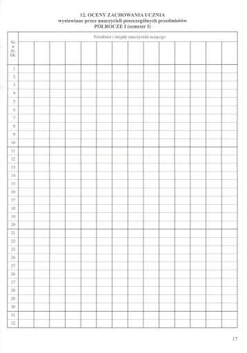 12. Oceny zachowania ucznia wystawiane przez nauczycieli, półrocze I