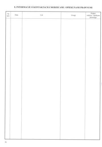 8. Informacja o kontaktach z rodzicami (opiekunami)