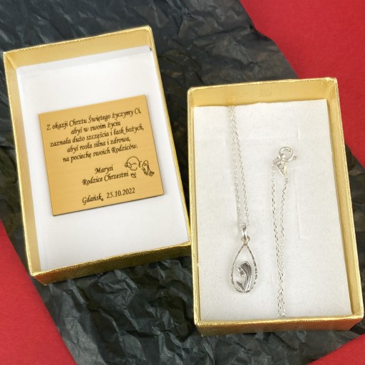 Chcesz by wewnątrz wieczka pudełka została przytwierdzona tabliczka? Podaj nam koniecznie treść do graweru! Zostanie on wykonywany na podstawie treści przesłanej przez Ciebie! Jeśli nie podasz nam treści graweru podczas składania zamówienia medalik zostanie zapakowany w ozdobne opakowanie bez tabliczki.