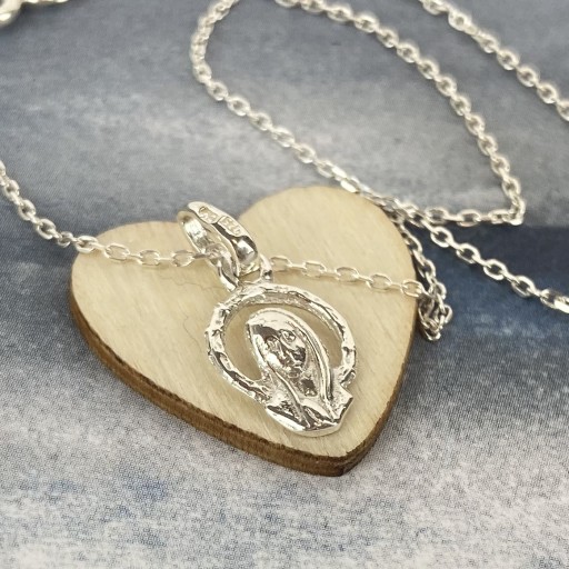DELIKATNY MEDALIK Z MATKĄ BOSKĄ SREBRO 925 CHRZEST