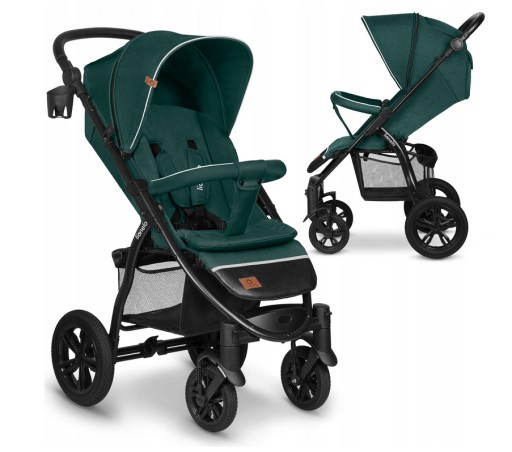 - Pełna amortyzacja —zwiększy komfort dziecka podczas przejazdów po nierównym terenie.