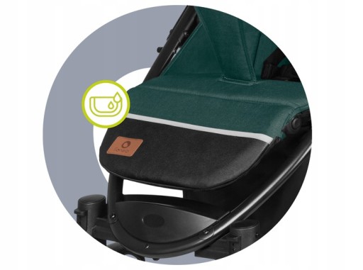 Podnóżek w wózku Lionelo Annet Tour pokryty jest ekoskórą, co ułatwia utrzymanie go w czystości. Zabrudzenia z tkaniny szybko schodzą po przetarciu wilgotną ściereczką.