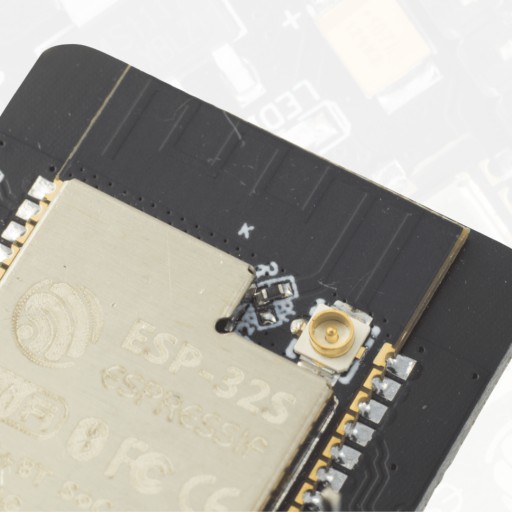 Moduł ESP32-S posiada antenę w postaci ścieżki PCB. Gdyby jej parametry okazały się niewystarczające, to na module znajduje się gniazdo U.FL dla zewnętrznej anteny.