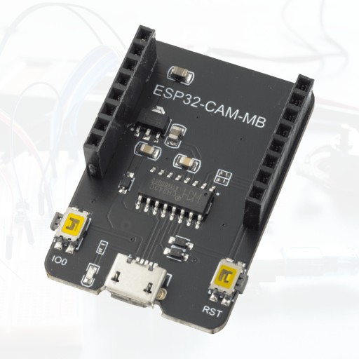 Ułatwia to dedykowana płytka z programatorem, która jest dołączona do zestawu. Wymiarami i złączami idealnie pasuje do ESP32-CAM.