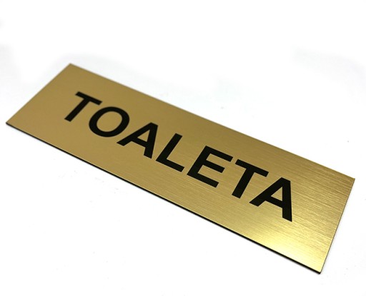 Tabliczka wykonana jest z laminatu grawerskiego ZŁOTEGO SZCZOTKOWNEGO .