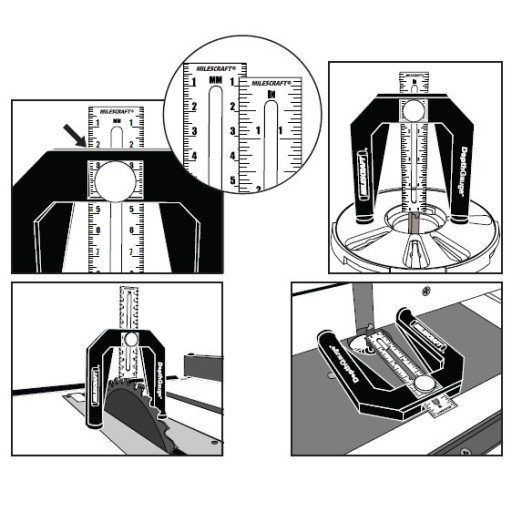 DepthGauge od Milescraft to głębokościomierz łatwy w użyciu przyrząd do pomiaru głębokości oraz prawidłowego ustawiania narzędzi do frezowania, cięcia na odpowiedniej głębokości.