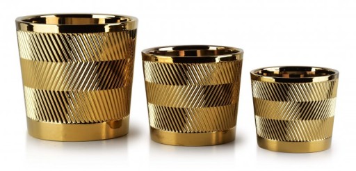 Komplet doniczek ceramicznych w kolorze złotym, zdobione oryginalnym wzornictwem