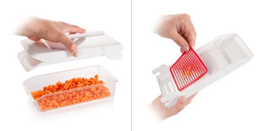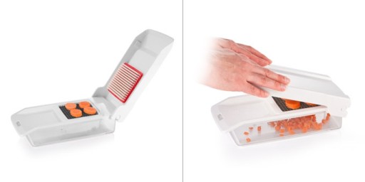 2) Miażdży zgrabne kostki i Julienne, co jest bardzo wygodne podczas przygotowywania sałatek, frytek i innych dań głównych.