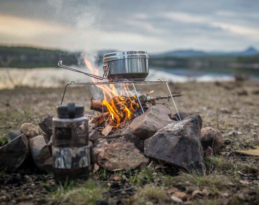 Poszczególne elementy zestawu wykonane są z grubej stali nierdzewnej, dzięki czemu bez obaw można używać ich bezpośrednio nad ogniem.
