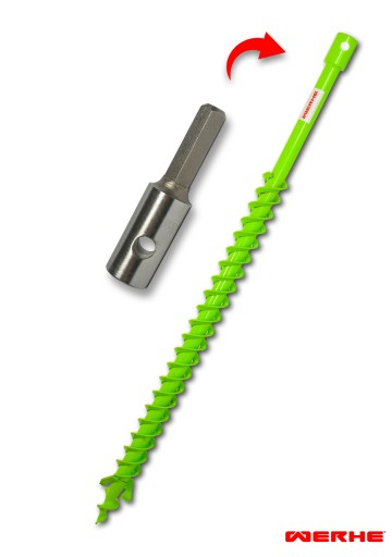 Wykorzystaj swoją wiertarkę / wkrętarkę ze standardowym uchwytem, dzięki czemu twoja praca będzie szybsza, tańsza - nie musisz kupować wiertnicy spalinowej, możesz wykorzystać sprzęt który posiadasz, nie potrzebujesz kupować drogiej wiertnicy - oraz cichsza. Dzięki czemu możesz spokojnie pracować nawet we własnym ogrodzie !
